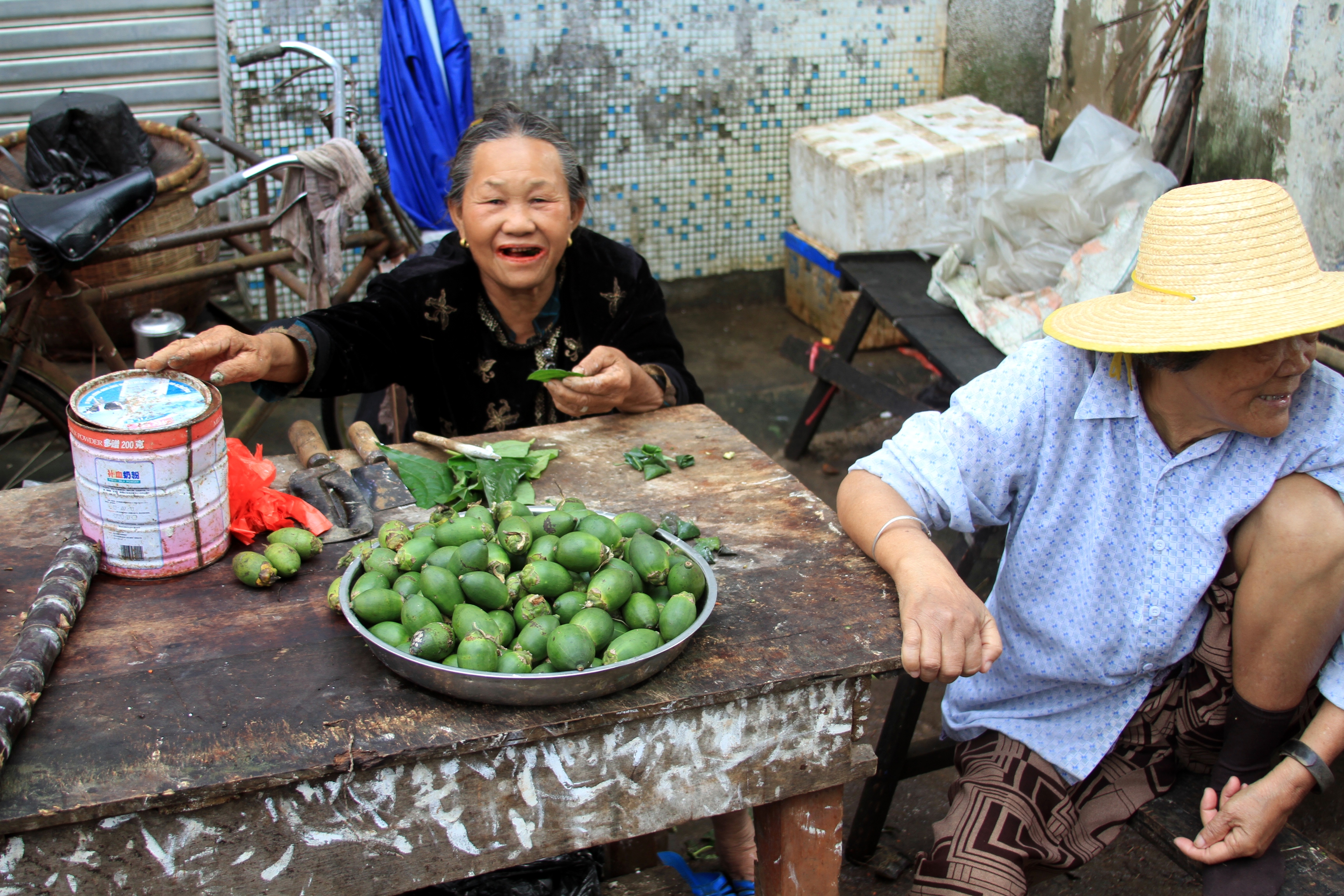 Photograph of an areca nut vendor on the island of Hainan, China. (from: Rolfmueller – Wikicommons – CC BY-SA 3.0)